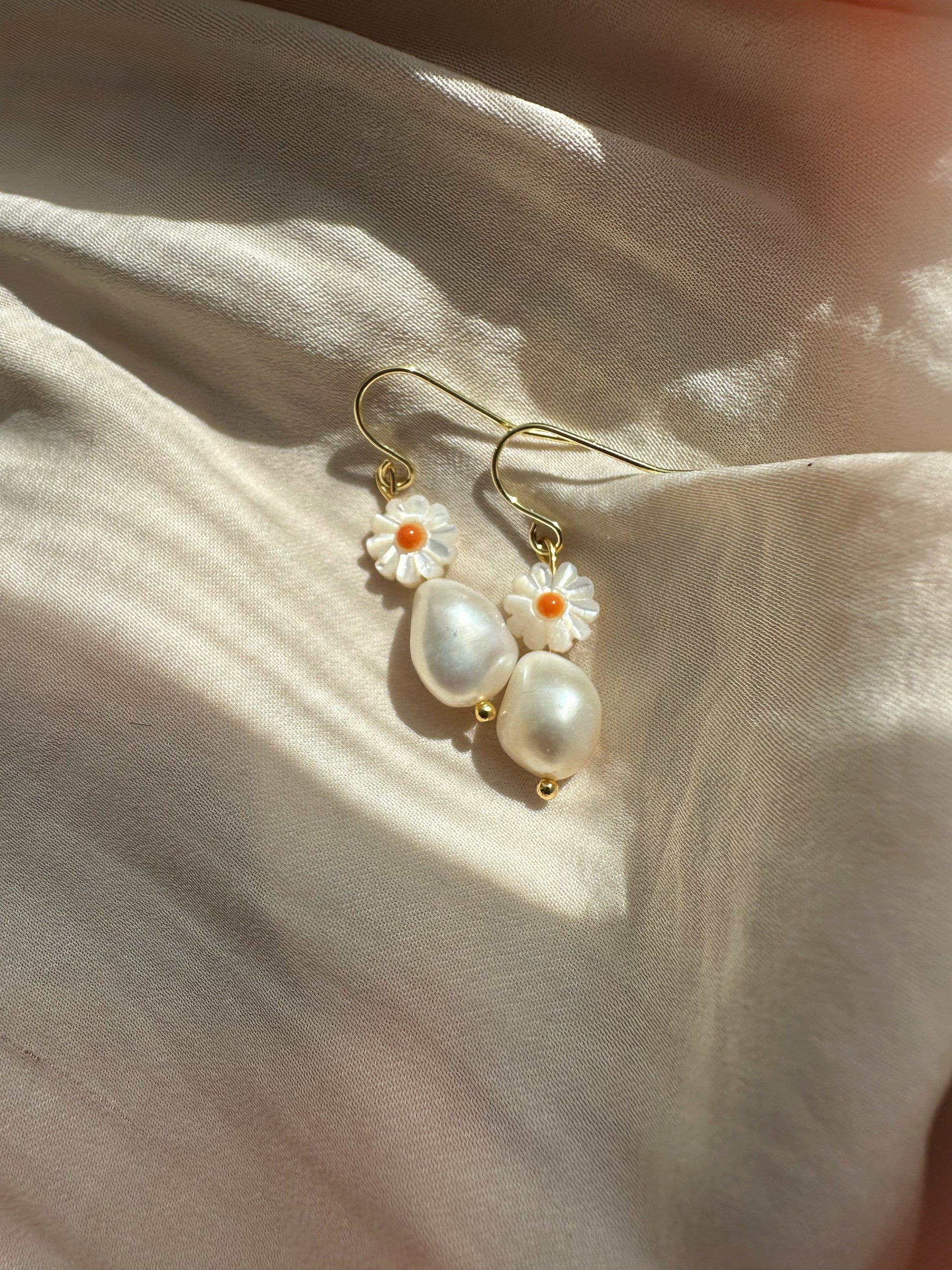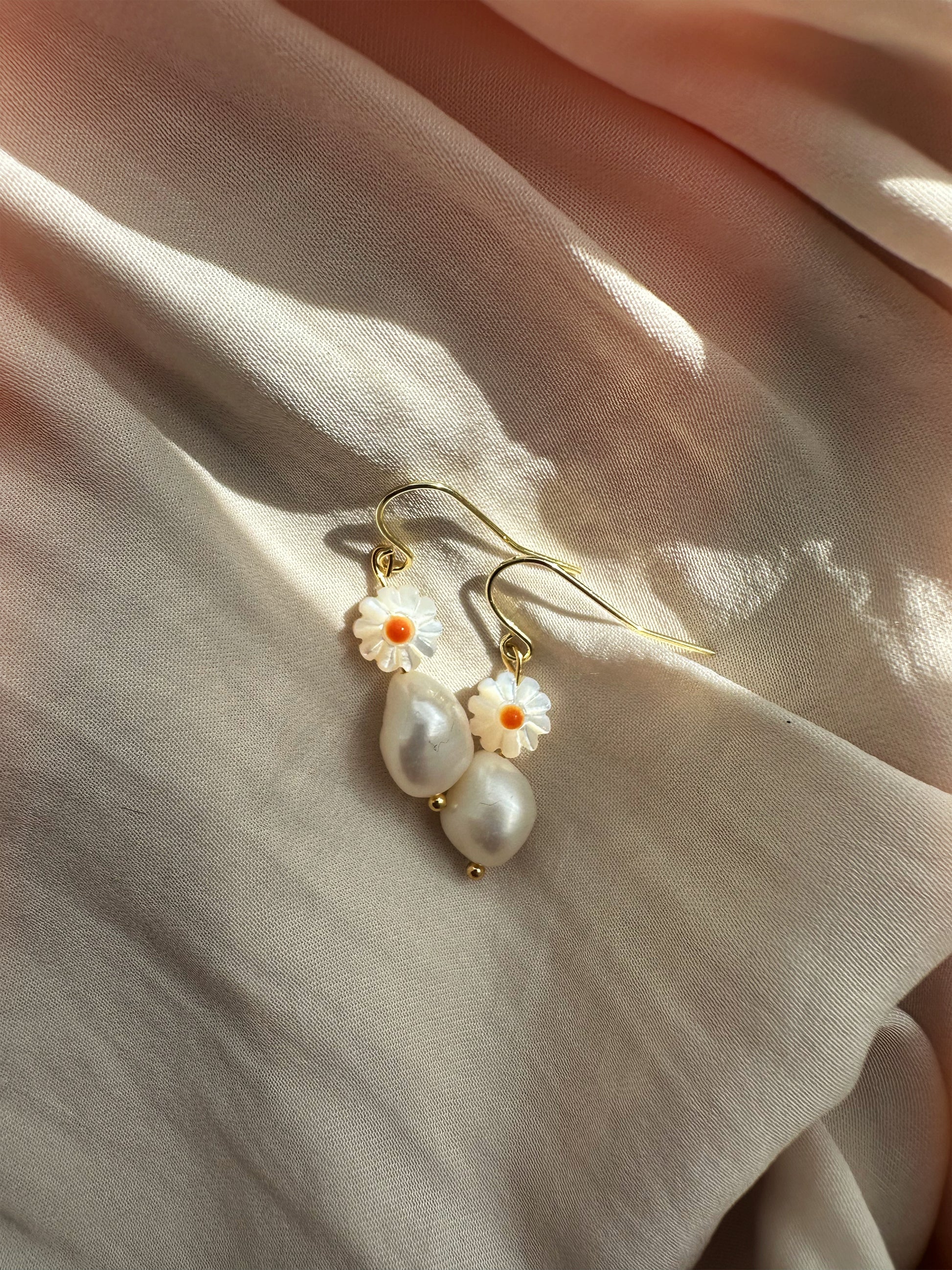 Die Daisy Ohrringe bestehen aus einer großen Süßwasserperle (10-12mm) kombiniert mit einem Gänseblümchen. Die Gänseblümchen verleihen den Ohrringen einen natürlichen und femininen Look.